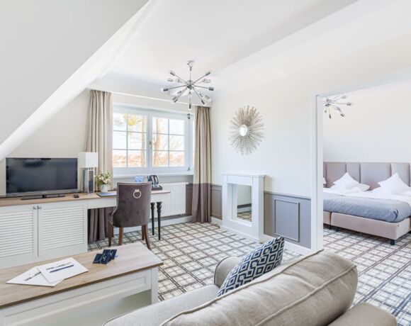 - 6 klimatyzowanych apartamentów dwuosobowych z oddzielną sypialnią i salonem
