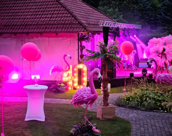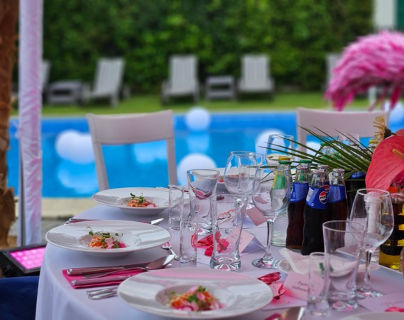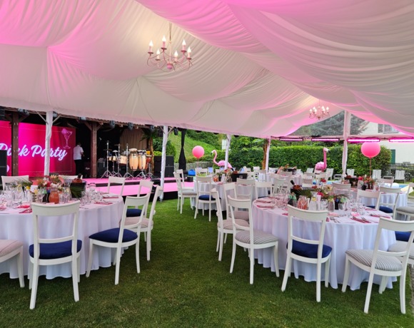 - „Pink Party” z Garden Barem przekształconym w scenę artystyczną (tancerki, występ bębniarza), namioty z okrągłymi stołami, bar z obsługą barmanów.